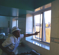 After opening the window the screen is moved along the track to protect the opening. |